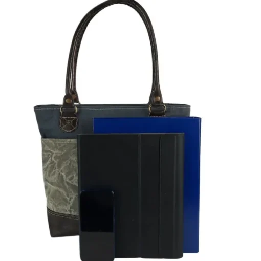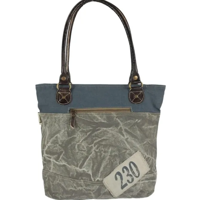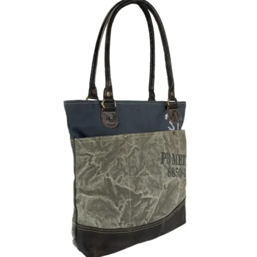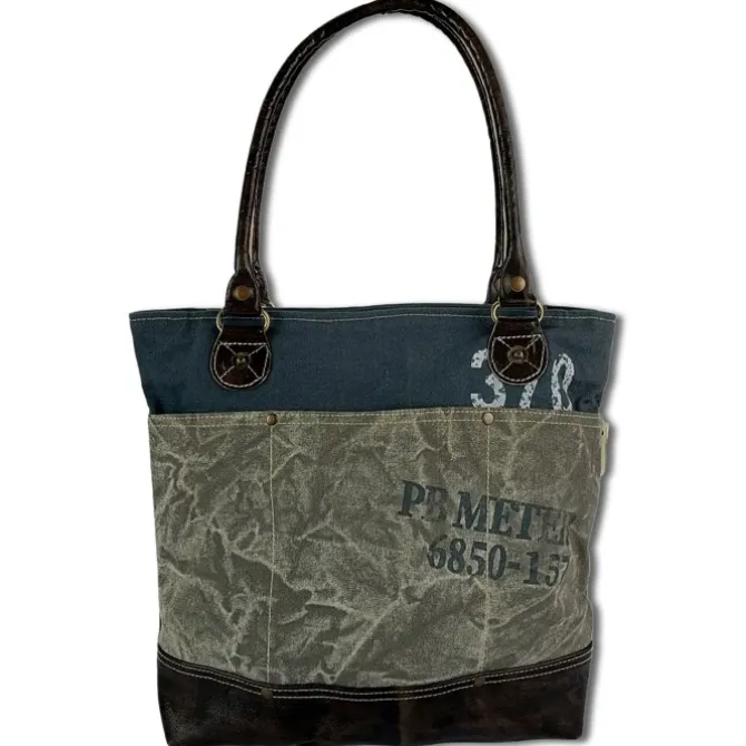 Shopper, Schultertasche Canvas, Leder grau, blau Sunsa