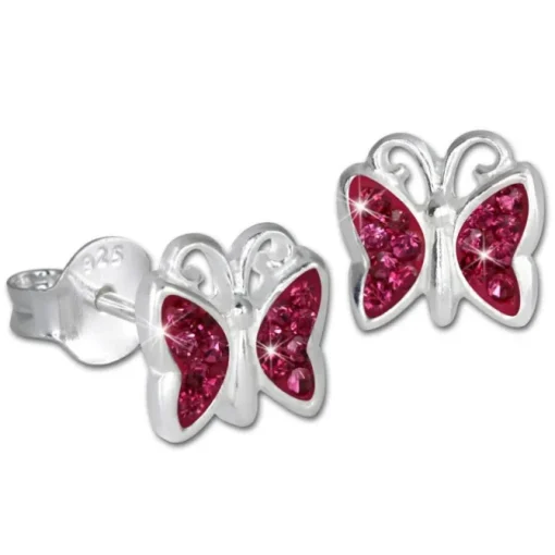 Ein Paar Kinder-Ohrstecker – Schmetterling Zirkonia pink – Ohrringe aus unserer einzigartigen SilberDream Kollektion aus anlaufgeschütztem 925 Sterling Silber.