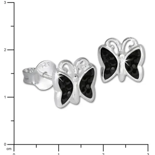 Ein Paar Kinder-Ohrstecker – Schmetterling Zirkonia schwarz – Ohrringe aus unserer einzigartigen SilberDream Kollektion aus anlaufgeschütztem 925 Sterling Silber.