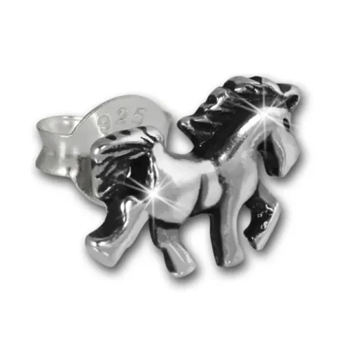 Ein Paar Ohrstecker Einhorn geschwärzt – trendige Silber Ohrringe aus unserer einzigartigen SilberDream Kollektion aus anlaufgeschütztem 925 Sterling Silber. Der kleine Ohrstecker ist auch geeignet für Zweit- und Drittloch.