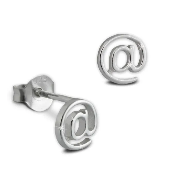 Ein Paar Ohrstecker @ – Zeichen, kleine Silber Ohrringe aus unserer einzigartigen SilberDream Kollektion aus anlaufgeschütztem 925 Sterling Silber. Der kleine Ohrstecker geeignet sich auch für Zweit- und Drittloch.