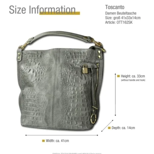 Diese trendige Damen Tasche von Toscanto aus der Toscanto Handbags Kollektion ist ein cooles Accessoire und ein echter Hingucker. Die graue Tasche ist der ideale Begleiter für den eleganten Abend.