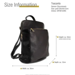 Diese trendige Damen Rucksack von Toscanto aus der Toscanto Handbags Kollektion ist ein cooles Accessoire und ein echter Hingucker. Die schwarze Rucksack ist der ideale Begleiter für den eleganten Abend.