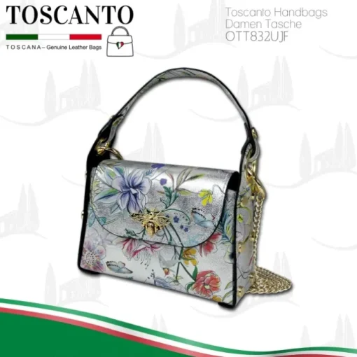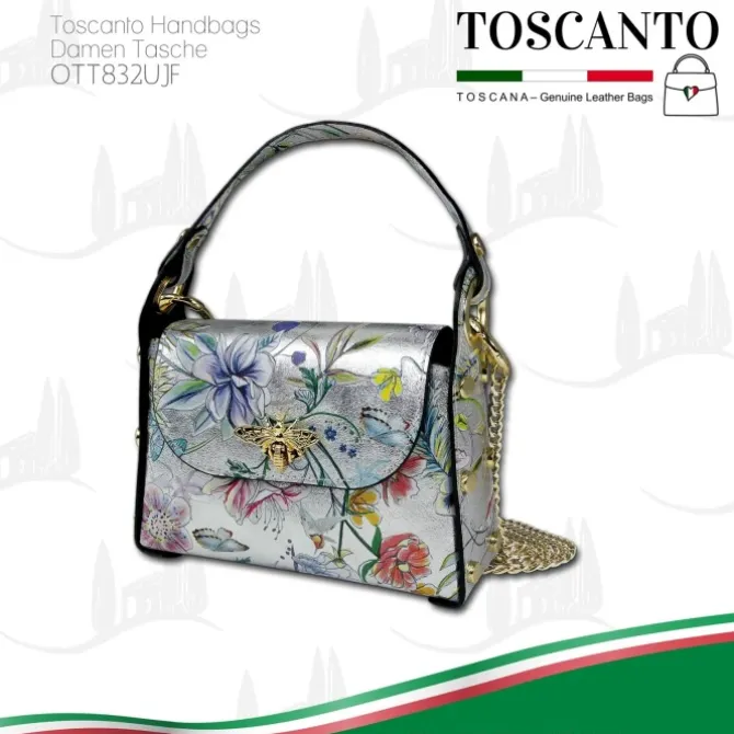 Diese trendige Damen Tasche von Toscanto aus der Toscanto Handbags Kollektion ist ein cooles Accessoire und ein echter Hingucker. Die silber, farbige Tasche ist der ideale Begleiter für den eleganten Abend.