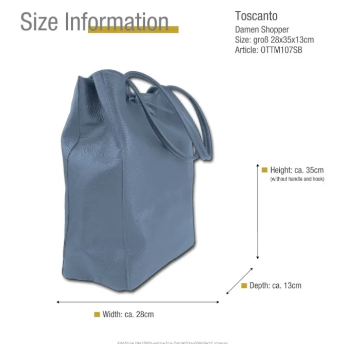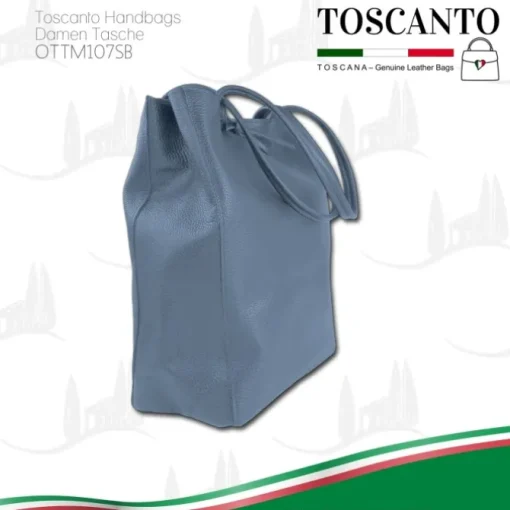 Toscanto Shopper, Schultertasche aus Leder in blau