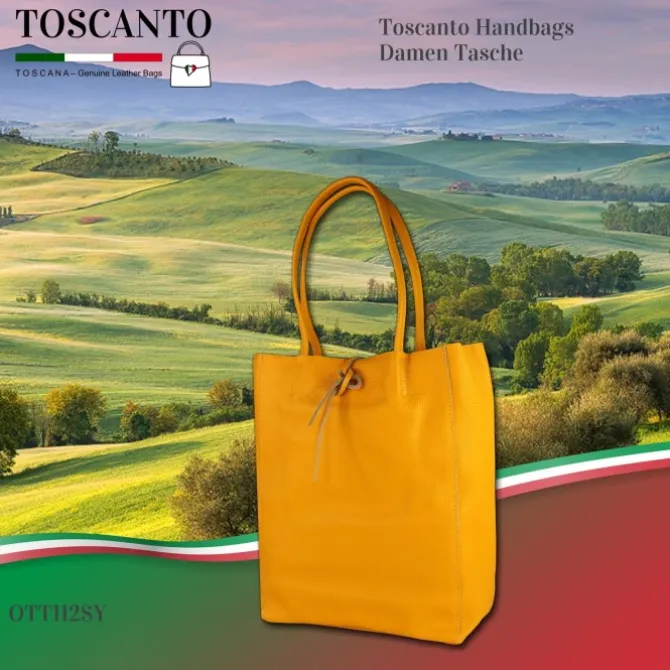 Toscanto Shopper, Schultertasche aus Leder in gelb
