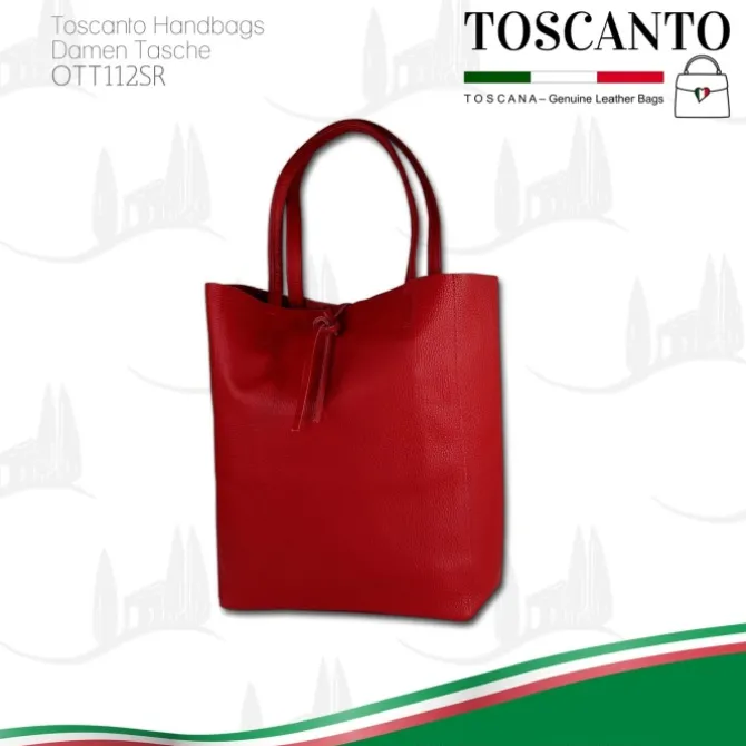 Toscanto Shopper, Schultertasche aus Leder in rot