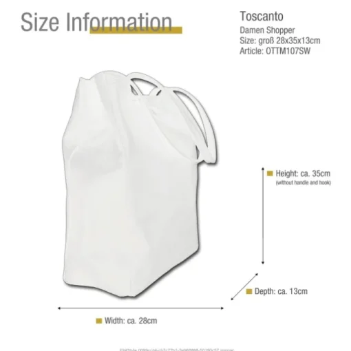 Diese trendige Damen Tasche von Toscanto aus der Toscanto Handbags Kollektion ist ein cooles Accessoire und ein echter Hingucker. Die weiße Tasche ist der ideale Begleiter für den eleganten Abend.