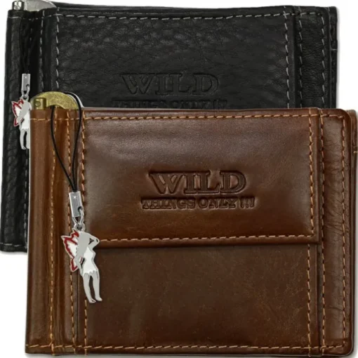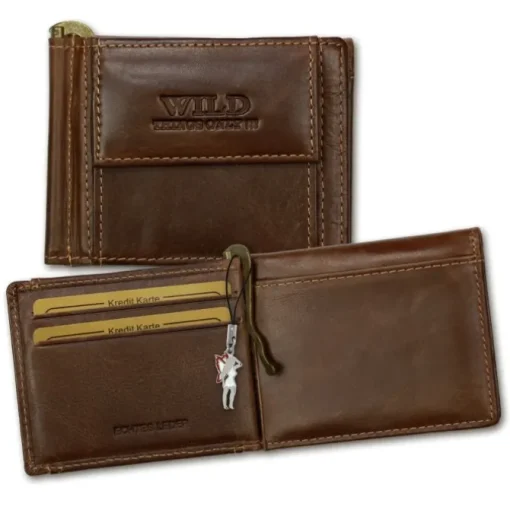 Geldbörse Leder braun Portemonnaie Quer Dollarclip – Wild Things Only