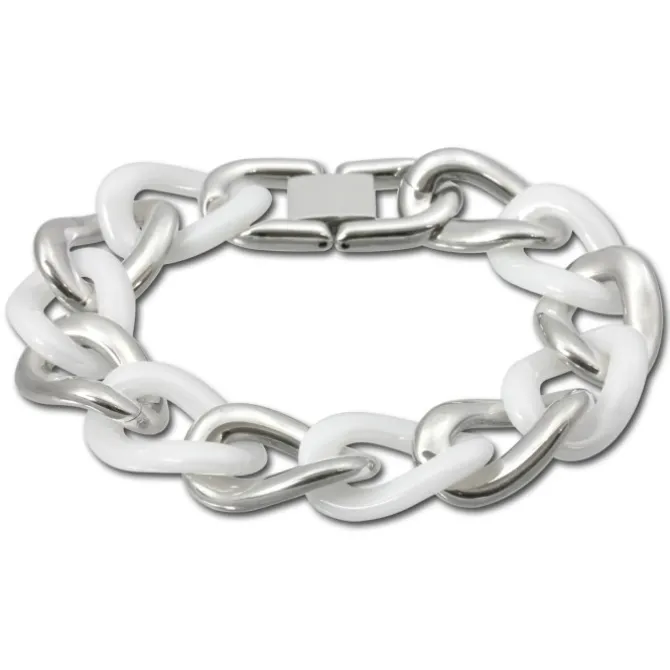 Ein Edelstahl Armband Panzer Big aus Keramik- und Stahl- Gliedern in der Farbe stahl und weiß.