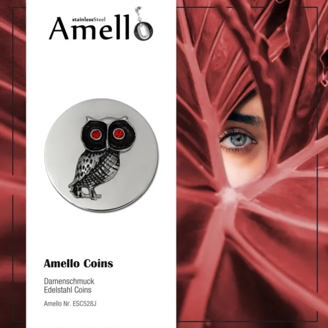 - Kurzbeschreibung: Amello Edelstahl Coin Eule Zirkonia
