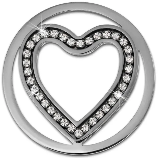 Der Edelstahl-Coin Herz in der Farbe silber (edelstahlfarben) ist trendig und sehr hochwertig verarbeitet und ist mit vielen kleinen weißen Zirkonias besetzt. Der Coin hat einen Durchmesser von 30mm und wird in eine Coinsfassung eingelegt. Der Coin ist ca 1mm dick und kann mit allen anderen Coins in 1mm Stärke kombiniert und als Doppelpack getragen werden. Es entsteht ein toller Effekt, da man verschiede Farben und Materialien unterlegen kann, und diese dann durchscheinen. Man muss nur noch eine Kette durch fädeln und schon ist das individuelle Schmuckstück fertig.