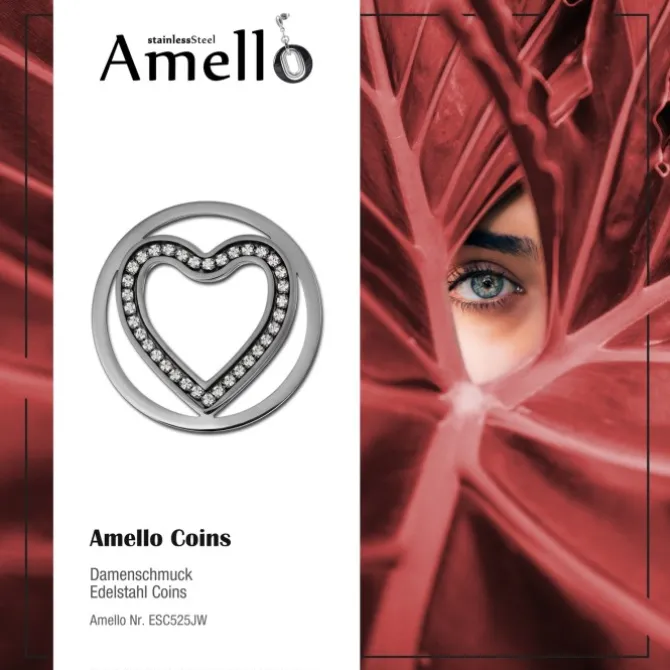 - Kurzbeschreibung: Amello Edelstahl Coin Herz Zirkonia