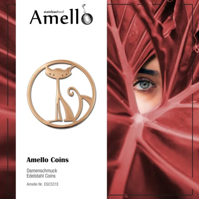 - Kurzbeschreibung: Amello Edelstahl Coin Katze rosevergoldet
