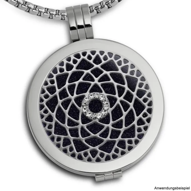 Der Edelstahl-Coin Lotusblume in der Farbe silber (edelstahlfarben) ist trendig und sehr hochwertig verarbeitet und ist mit vielen kleinen weißen Zirkonias besetzt. Der Coin hat einen Durchmesser von 30mm und wird in eine Coinsfassung eingelegt. Der Coin ist ca 1mm dick und kann mit allen anderen Coins in 1mm Stärke kombiniert und als Doppelpack getragen werden. Es entsteht ein toller Effekt, da man verschiede Farben und Materialien unterlegen kann, und diese dann durchscheinen. Man muss nur noch eine Kette durch fädeln und schon ist das individuelle Schmuckstück fertig.