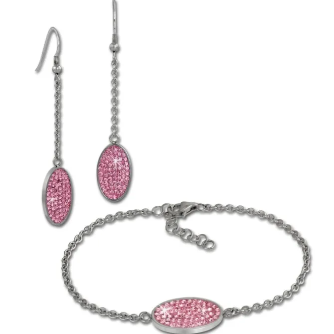 - Kurzbeschreibung: Amello Edelstahl Schmuckset Oval Zirkonia Kristalle rosa