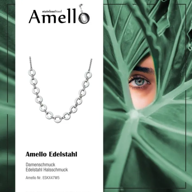 Stylische Armbänder, modische Ohrringe und Creolen, Edelstahl Ketten und Anhänger, in der Amello Kollektion finden Sie immer Ihre persönliche Zusammenstellung. Sie können den Amello Stainless Steel Schmuck aber auch mit vorhandenen Schmuckstücken ergänzen.