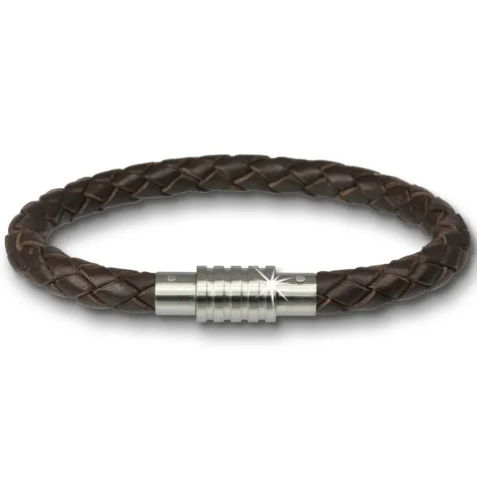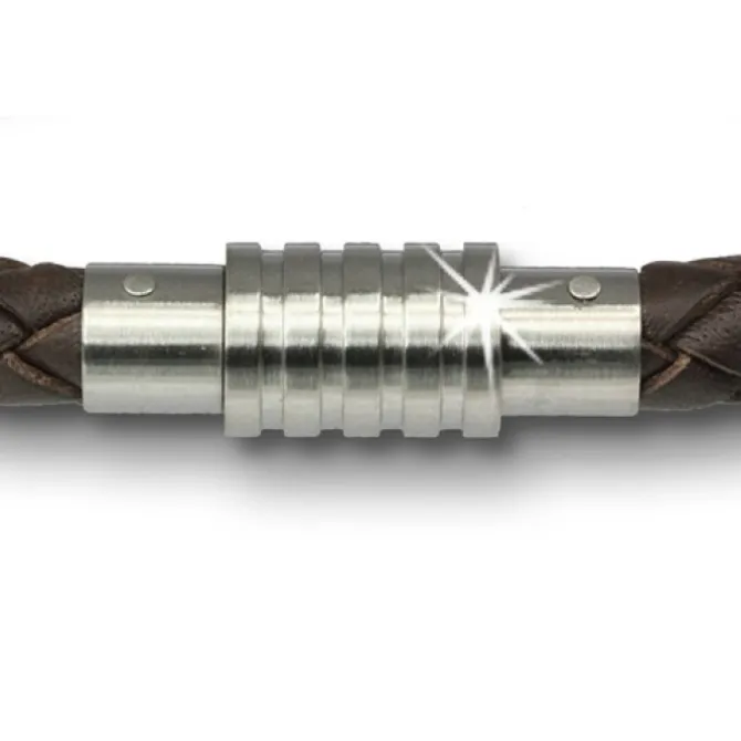 Ein geflochtenes Leder Armband in der Farbe braun mit Edelstahl Magnet-Schraubverschluss (Stainless Steel). Die Dicke des Leder Armbandes ist 7mm und die Länge ist 20,5cm.