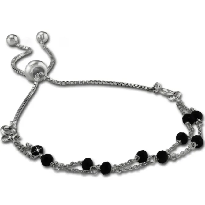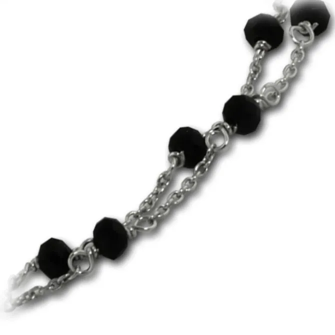 Ein Armäleon Armband bestehend aus einem Designteil -doppelte schwarze Kugeln- und einer Basiskette mit Verschluss -Oval- Das Armband ist komplett und kann so getragen werden. Designteil und Basiskette lassen sich jedoch auch an andere Armäleon Schmuckstücke ankoppeln.