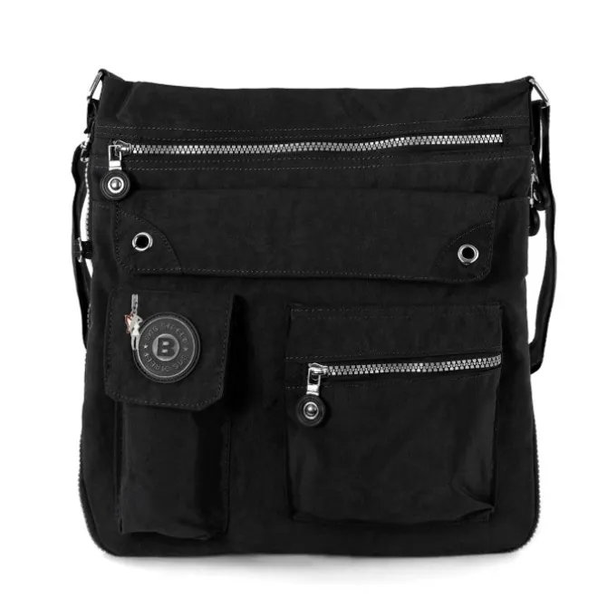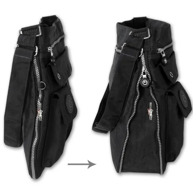 Umhängetasche Nylon schwarz Schultertasche Crossover Handtasche – Bag StreetStylische und praktische Umhängetasche mit vielen nützlichen Fächern aus Crinkle Nylon, die auch als -Crossover- Tasche getragen werden kann. Der Clou, dank der seitlichen Reißverschlüsse lässt sie sich problemlos in der Tiefe erweitern. Im Lieferumfang enthalten ist ein kleiner Fee-Anhänger, der am Produkt oder auch als Handyanhänger getragen werden kann.
