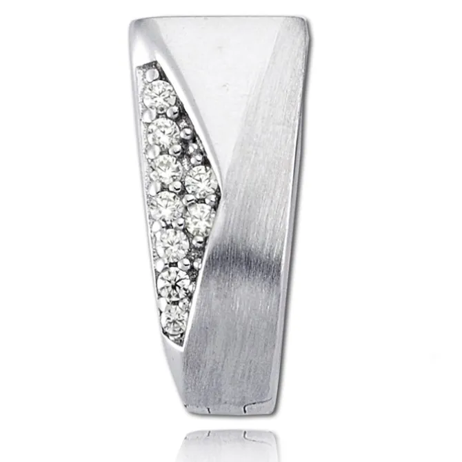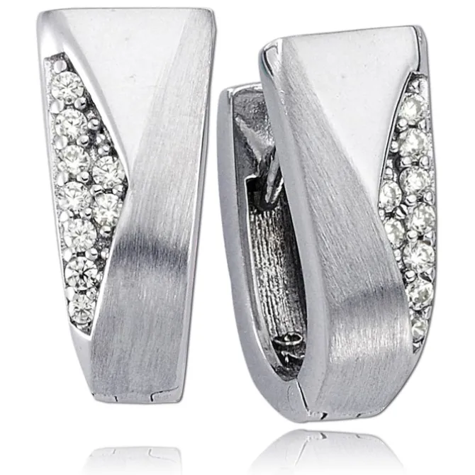 Elegante Damencreolen aus poliertem 925er Sterling Silber. Die Creolen sind mit funkelnder Zirkoniasteinen in der Form eines Dreieck besetzt.