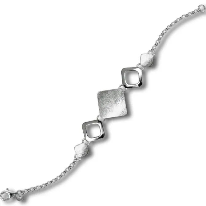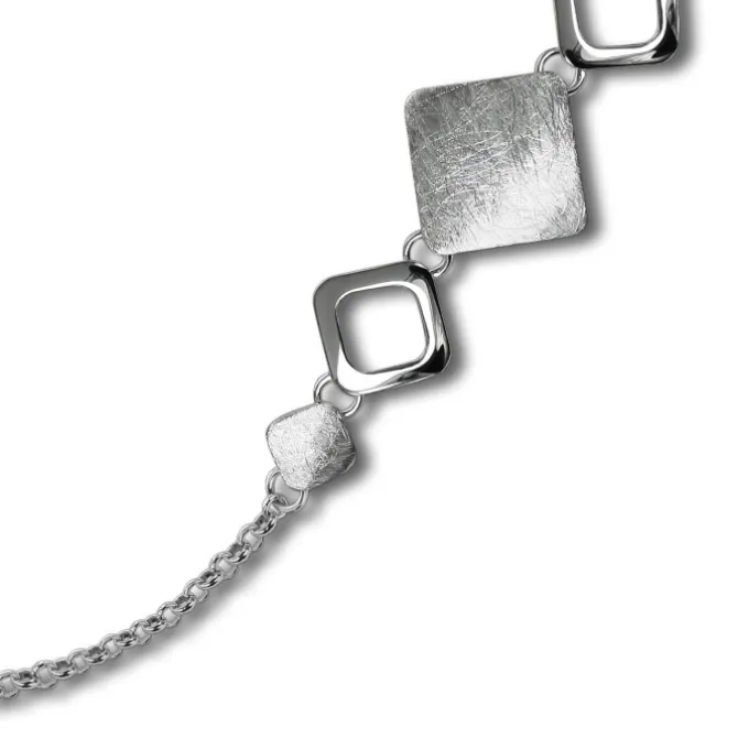 Modernes Armband aus 925er Sterling Silber mit mattierter und glänzender Oberfläche. Die viereckigen Glieder sind mattiert und gebürstet und die offenen Vierecke sind poliert.