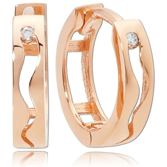 Elegante Creolen aus hochwertigem 333er Rosegold gefertigt. Die Ohrringe sind mit einzelnen funkelndem Zirkonia besetzt. Das Muster ist in einer Wellen-Form.