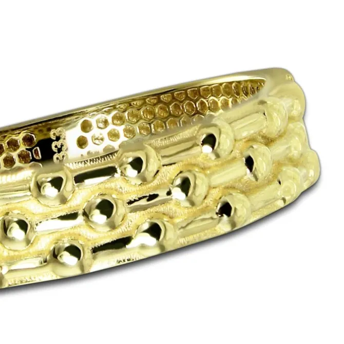 Ein moderner Ring aus hochwertigem 333er Gelbgold gefertigt. Die Ringschiene ist mit einem trendigem Design -Dots- verziert. Der Ring hat eine Größe von 56 (17,8).