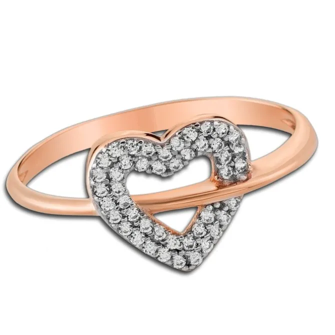 Eleganter Ring aus hochwertigem 333er Rosegold gefertigt. Auf der Ringschiene ist ein offenes Herz angebracht, welches mit zwei Reihen Zirkoniasteinen besetzt ist. Der Ring hat eine Größe von 56 (17,8).