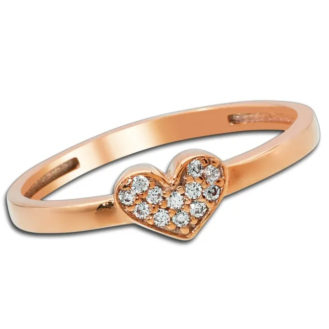 Eleganter Ring aus hochwertigem 333er Rosegold gefertigt. Auf der Ringschiene ist ein Herz angebracht, welches mit Zirkoniasteinen besetzt ist. Der Ring hat eine Größe von 60 (19,1).