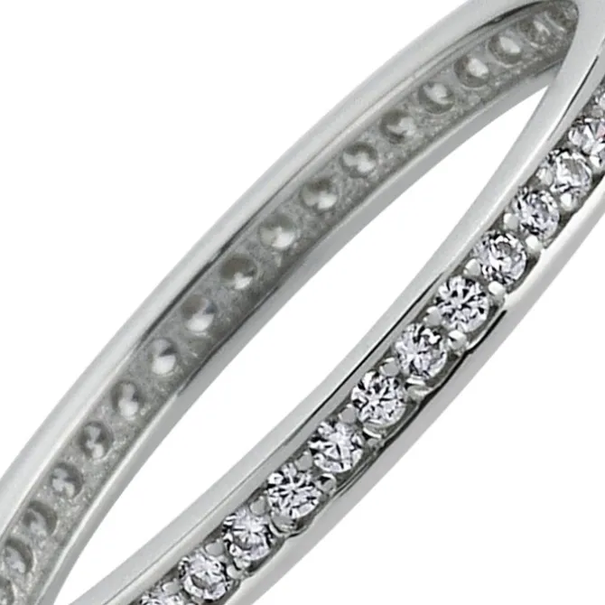 Eleganter Ring aus hochwertigem 333er Weißgold gefertigt. Die funkelnden Zirkonia, welche rundherum in der Ringschiene eingebracht sind, machen den Ring zum Eyecatcher. Der Ring hat eine Größe von 60 (19,1).