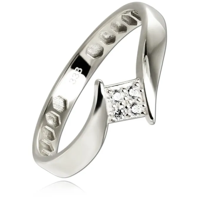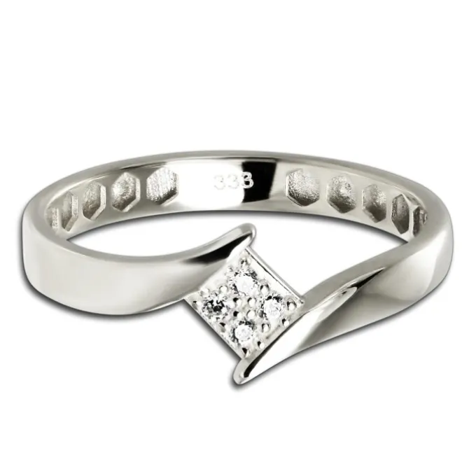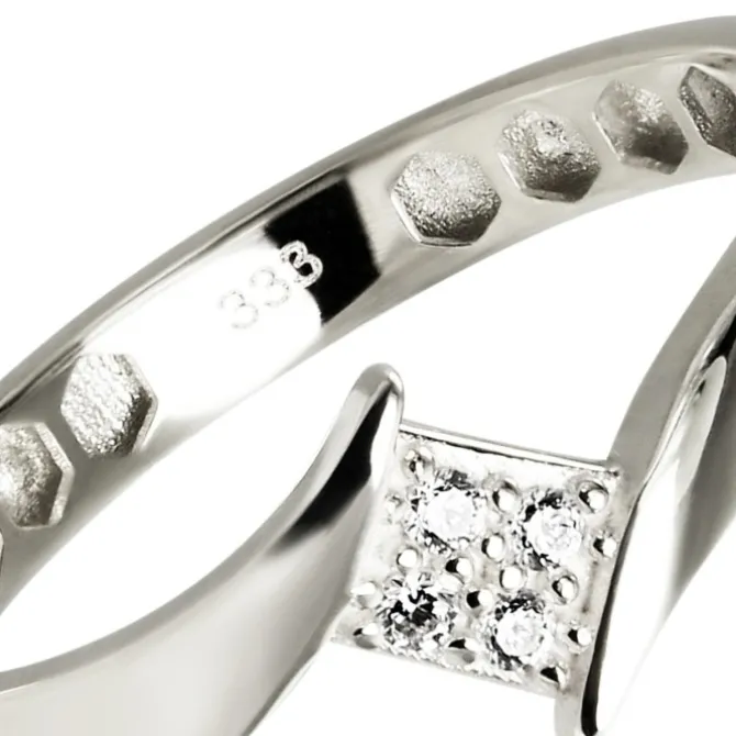 Eleganter Ring aus hochwertigem 333er Weißgold gefertigt. Auf der Ringschiene ist eine Viereck angebracht, welche mit Zirkoniasteinen besetzt ist. Der Ring hat eine Größe von 60 (19,1).