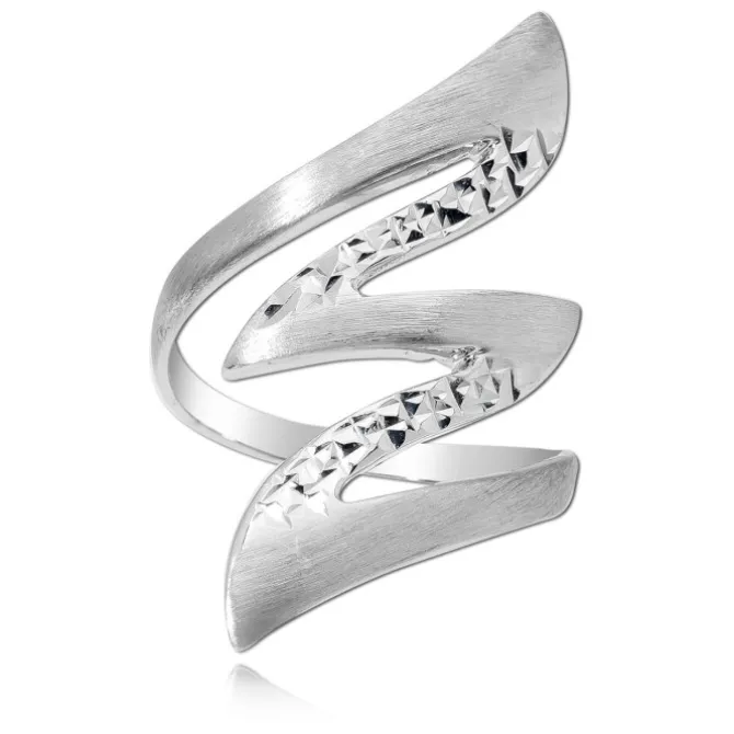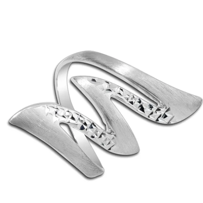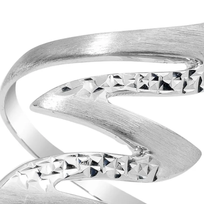 Stylischer Ring Blitz aus 925er Sterling Silber mit mattierter und diamantierter Oberfläche. Der Ring hat eine Größe von 52 (16,6).