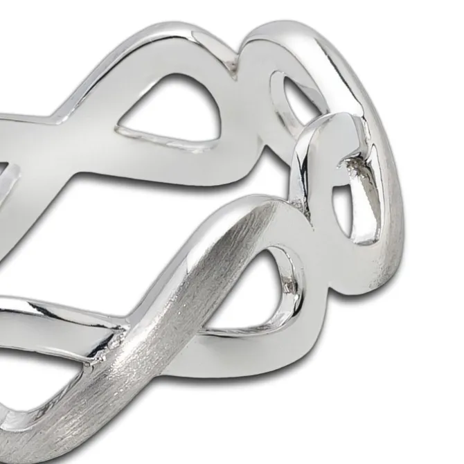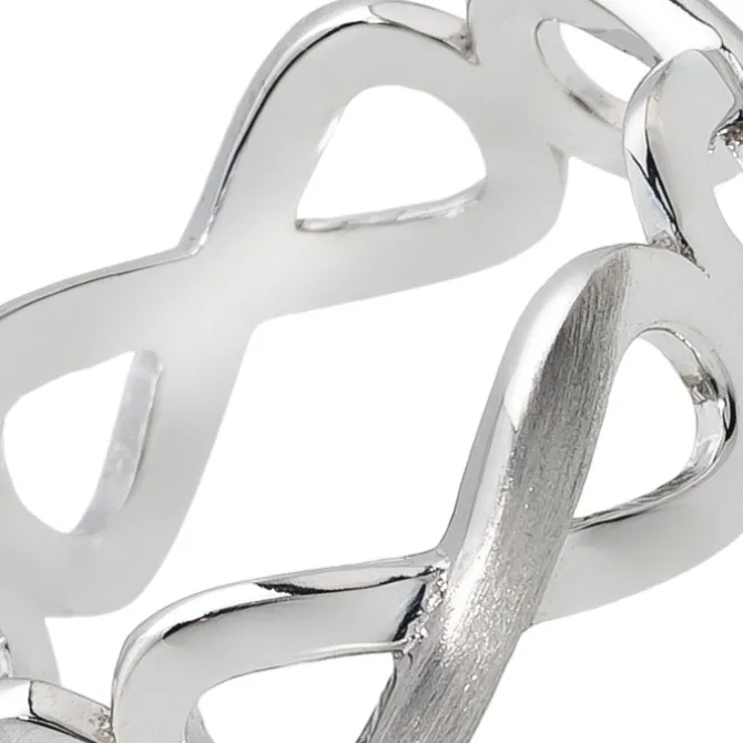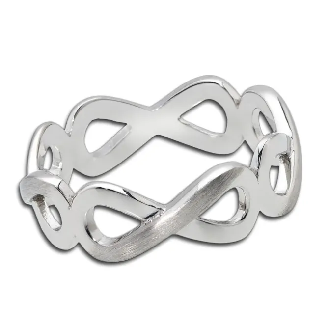 Stylischer Ring aus 925er Sterling Silber mit vielen aneinanderlegenden Unendlichkeits-Zeichen. Der Ring hat eine Größe von 54 (17,2).