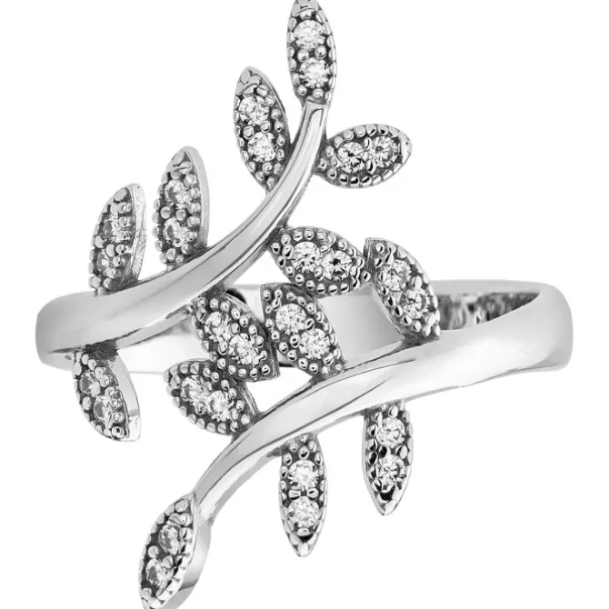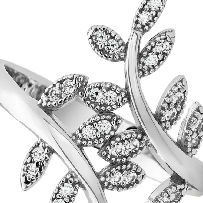 Romatischer Ring aus 925er Sterling Silber. Beauty Silberring im Blätter Design, mit weißen funkelnden Zirkonia. Der Ring hat eine Größe von 62 (19,7).