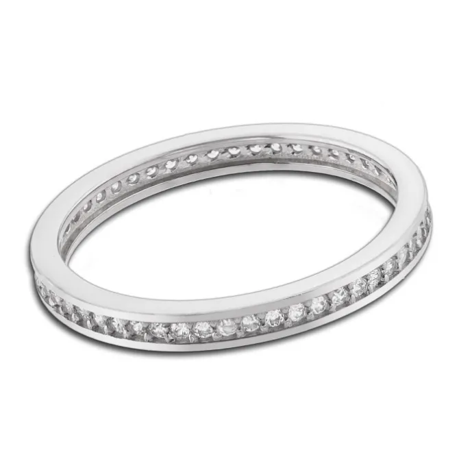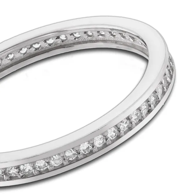 Edler Ring aus 333er Weißgold gefertigt. Die Ringschiene ist mit einer Reihe funkelnden Zirkonias besetzt. Der Ring hat eine Größe von 54 (17,2).