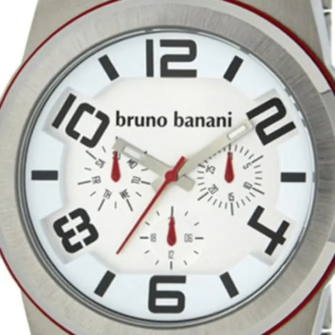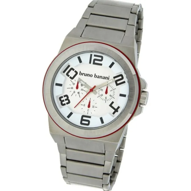 - Kurzbeschreibung: Bruno Banani Herrenarmbanduhr Zelos, silber/rot, Metallarmband, Edelstahl, Multifunktion – ZL4 000 100 Uhr UBR21123