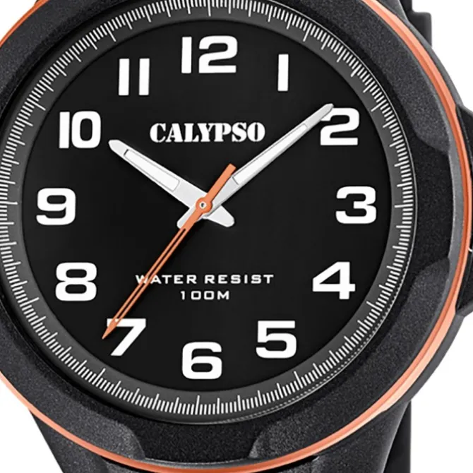 Diese Casual Uhr für Herren, Jugend aus der exklusiven Calypso Analogico-Kollektion verfügt über ein hochwertiges Kunststoff-Armband in schwarz. Das analoge Quarzwerk und die Wasserdichte bis 10 bar machen diese Armbanduhr zu einem besonders zuverlässigen Begleiter.