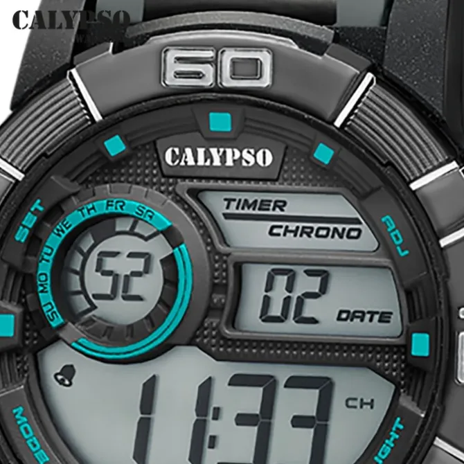 Mit Features wie Stoppuhr, Alarm und Wasserdichtigkeit sind die Uhren der Calypso Digital Kollektion nicht nur praktisch, sondern auch äußerst funktional. Ihr modernes Erscheinungsbild und ihre strapazierfähigkeit machen sie zum treuen begleiter.