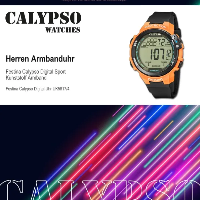 Calypso ist eine führende Marke im Bereich der sportlichen und lässigen Uhren, bekannt für ihre Dynamik, Vielseitigkeit und Strapazierfähigkeit. Mit einem Fokus auf Innovation und modernem Design bietet Calypso, gleichzeitig einen Hauch von Stil und Funktionalität.