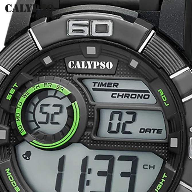 Mit Features wie Stoppuhr, Alarm und Wasserdichtigkeit sind die Uhren der Calypso Digital Kollektion nicht nur praktisch, sondern auch äußerst funktional. Ihr modernes Erscheinungsbild und ihre strapazierfähigkeit machen sie zum treuen begleiter.