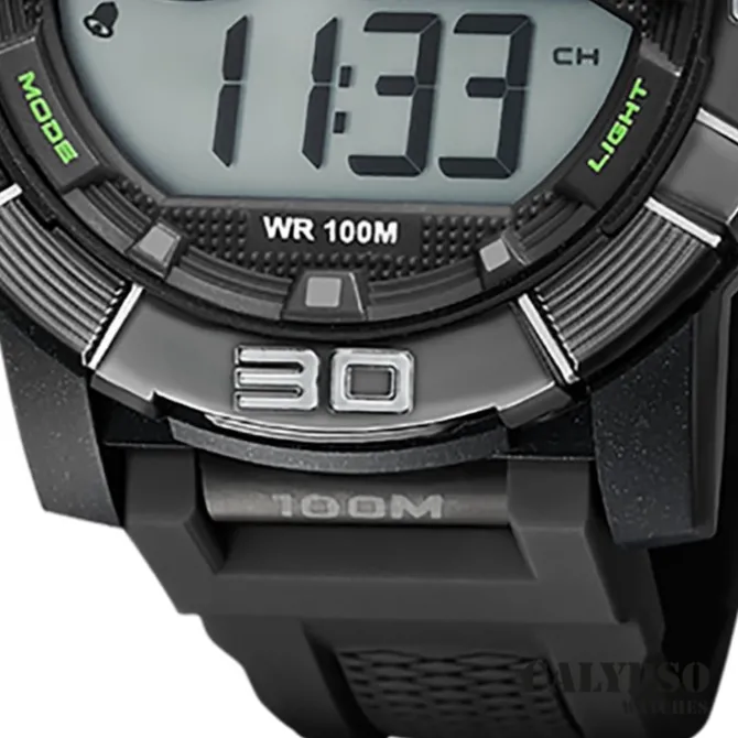 Diese einzigartige Uhr für Herren aus der aktuellen Calypso Digital Kollektion garantiert hohen Tragekomfort durch das hochwertige Kunststoff-Armband in schwarz. Die Armbanduhr mit digitaler Anzeige und präzisem Armbanduhr ist ein zuverlässiger Begleiter in Alltag und Freizeit.