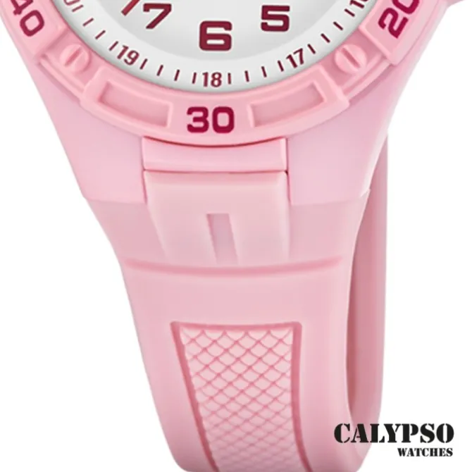 Diese einzigartige Uhr für Jugend aus der aktuellen Calypso Junior Kollektion garantiert hohen Tragekomfort durch das hochwertige Silikon-Armband in rosa. Die Armbanduhr mit analoger Anzeige und präzisem Armbanduhr ist ein zuverlässiger Begleiter in Alltag und Freizeit.