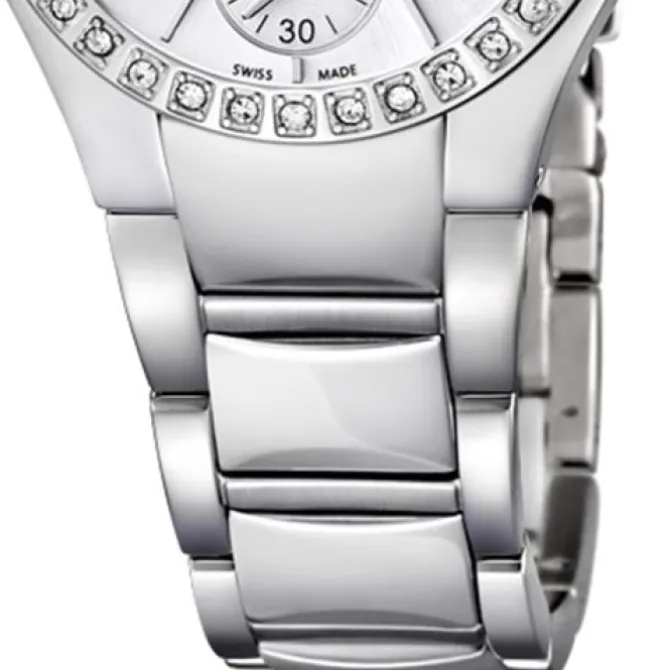 Diese elegante Uhr für Damen kommt mit einem hochwertigen Edelstahl-Armband in silber. Die Analoguhr zeichnet sich besonders durch ein höchst präzises Quarzwerk aus.