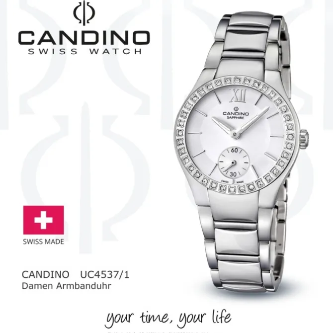 Candino Armbanduhren sind für Damen und Herren mit hohen Ansprüchen an Qualität und Design. Das-Swiss Made-Siegel garantiert Ihnen hervorragende Schweizer Qualität und die Verarbeitung edler Materialien wie Echtleder und Edelstahl. Die Uhrenmarke bietet ein breites Spektrum an Armbanduhren mit Quarz- und Automatikuhrwerken, welches von eleganten, klassischen Stilen bis hin zu sportlichen Modellen reicht.