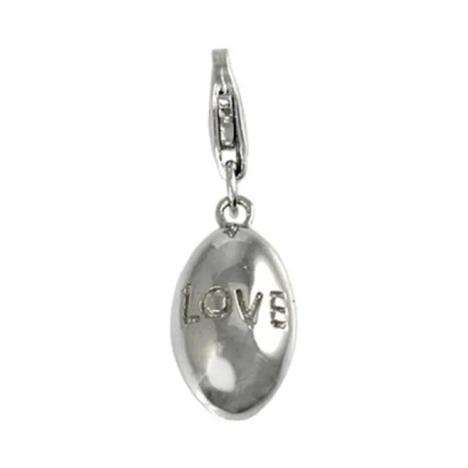 Ein Silber Charm Bettelarmband Anhänger Oval Tropfen Love aus 925 Sterling Silber. Bestellen Sie den ovalen Tropfen Anhänger Love als Charm exklusiv in unserem Onlineshop.