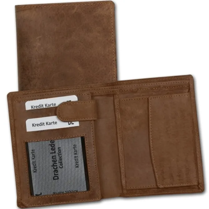 - Kurzbeschreibung: DrachenLeder Portemonnaie Antikleder braun Geldbörse OPS108N