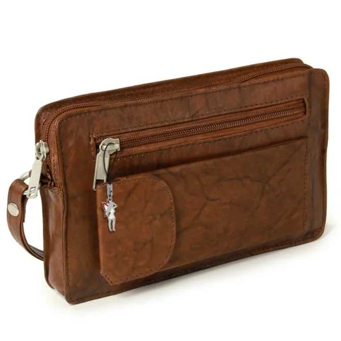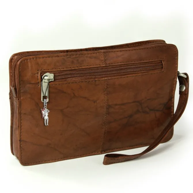 Handgelenktasche Leder tan, braun Handytasche Herrentasche – DrachenLeder