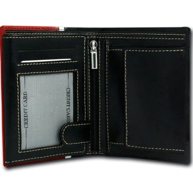 DrachenLeder Geldbörse Echtleder, glatt schwarz, rot Portemonnaie OPT042R Handliches Portemonnaie aus echtem, weichem Leder als idealer Alltagsbegleiter mit vielen Fächern für Kreditkarten, Ausweise, Fotos, Quittungen, etc.