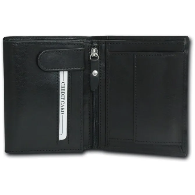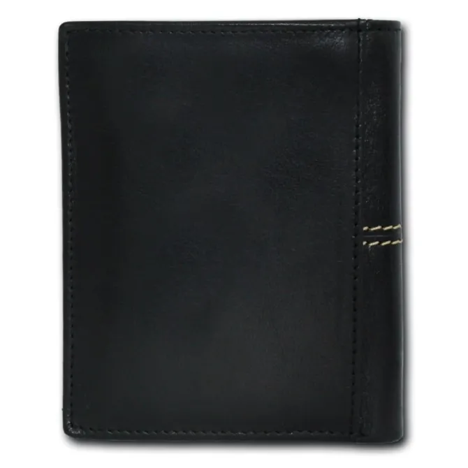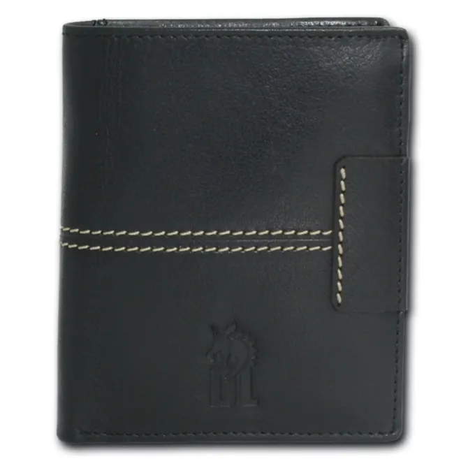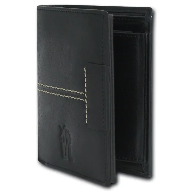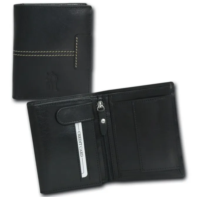 DrachenLeder Geldbörse Echtleder, glatt schwarz, naturweiße Steppnähte Portemonnaie OPT102S Handliches Portemonnaie aus echtem, weichem Leder als idealer Alltagsbegleiter mit vielen Fächern für Kreditkarten, Ausweise, Fotos, Quittungen, etc.